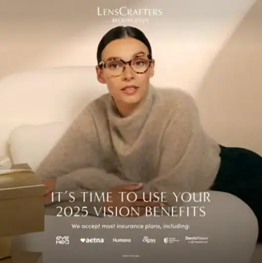 Save 30% off select frames and 50% off lenses, when purchasing a complete pair. Complete pair purchase required, savings applied to lenses. Non-sun purchases require anti-reflective prescription lenses to receive 30% off frame. When purchasing prescription lens receive 50% off the lenses in combination with 30% off frames. Offer cannot be combined with vision benefits, Great Value Package, Designer Sale, multiple pair offers, bonus dollar off savings, any other offer or discount, or previous purchases. Valid on multiple pairs. Valid prescription required. Alain Mikli®, Brunello Cucinelli®, Chanel®, Diesel®, Miu Miu®, Maui Jim®, Oakley® Special Projects, Oliver Peoples®, Persol®, Prada®, Prada Linea Rossa®, Ray-Ban® Special Projects, Costa Del Mar® Special Projects, Cartier®, Lindberg® and wearable electronic frames excluded. Additional exclusions may apply, see store for details. Discounts are off tag price. No cash value. Void where prohibited. Offer valid in-store and online at LensCrafters.com. Offer valid through 12/1/2025.