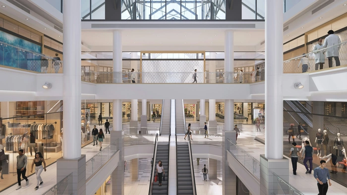 Two levels of shops and restaurants including Zara, Apple, Sephora, The Cheesecake Factory and more.